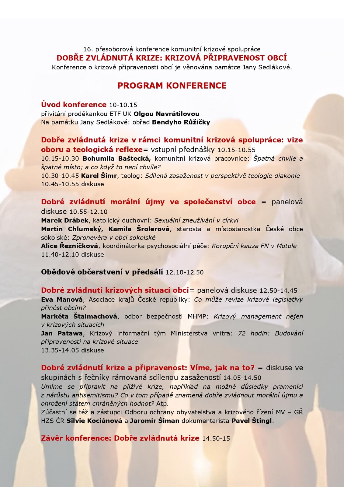 Na programu jsou vstupní přednášky, panelové diskuse i sdílení zkušeností z praxe – od morálních zranění ve společnosti po krizové řízení obcí.