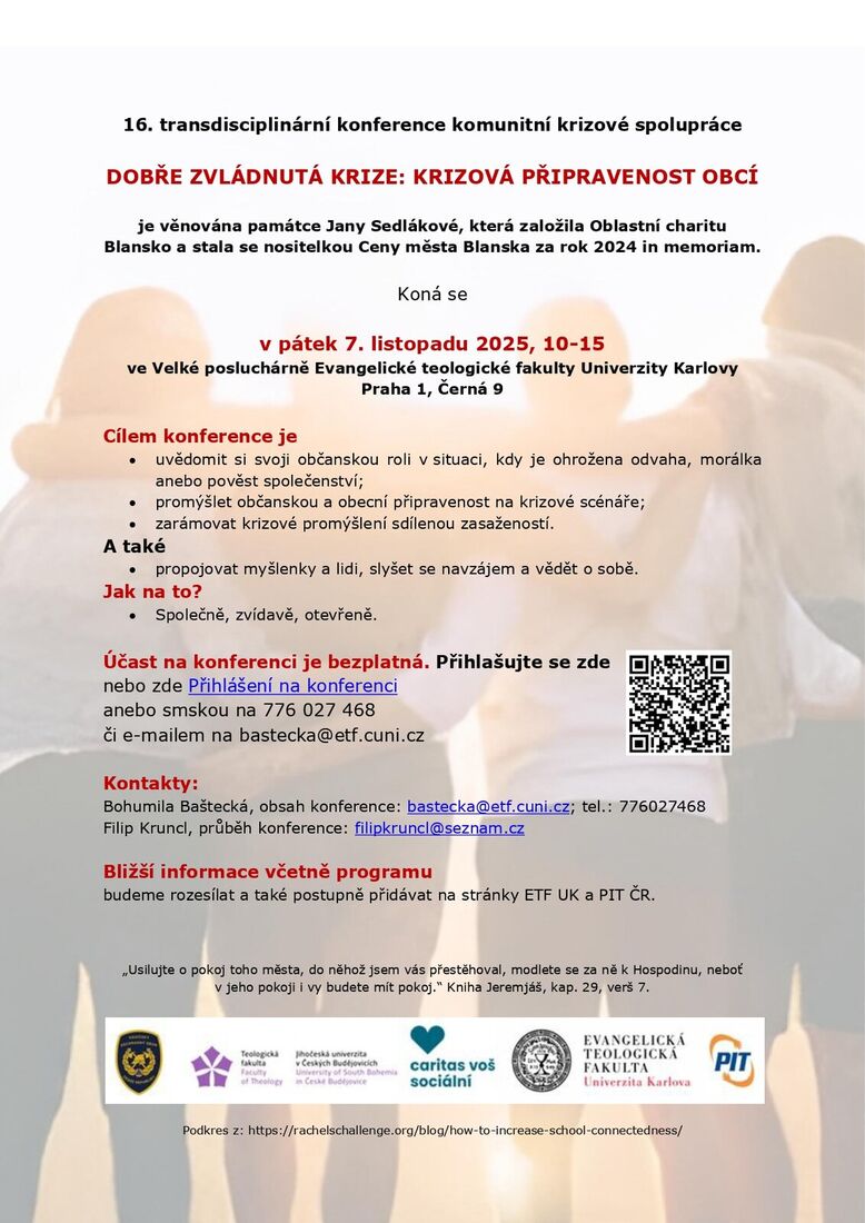 Konference věnovaná památce Jany Sedlákové, zakladatelky Oblastní charity Blansko, se zaměřuje na otázku, jak mohou obce a místní společenství čelit krizím – morálním, společenským i bezpečnostním – s odvahou, rozvahou a sdílenou odpovědností.