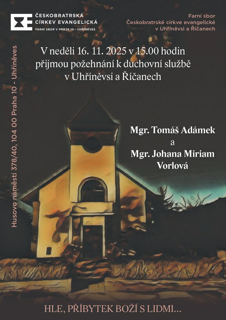 Instalace pro službu v Uhříněvsi a v Říčanech se uskuteční 16.11.2025 v Uhříněvském kostele od 15:00 hodin.