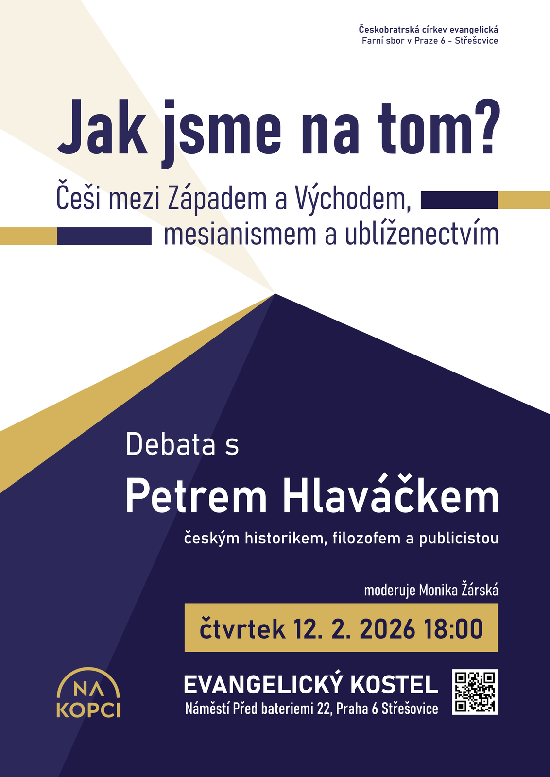 Ve čtvrtek 12. 2. 2026 od 18:00 hodin, evangelický kostel ve Střešovicích, Náměstí Před Bateriemi 22, Praha 6.